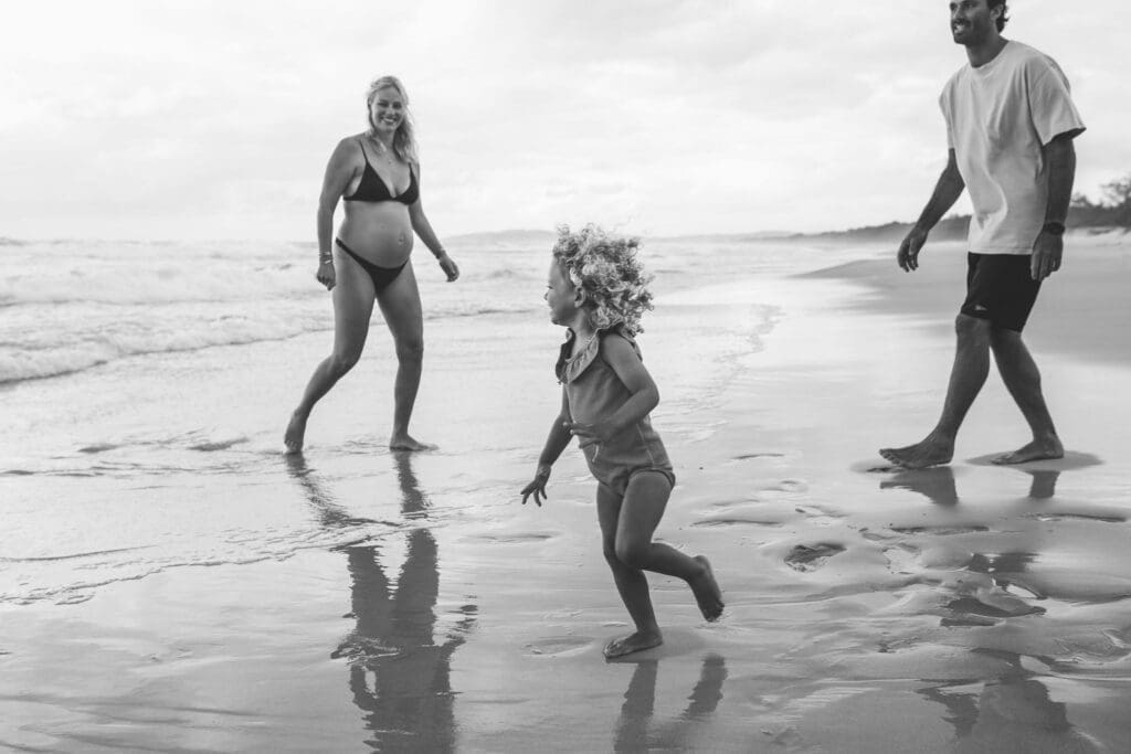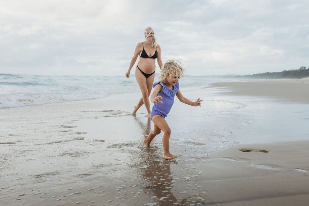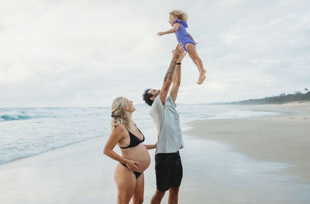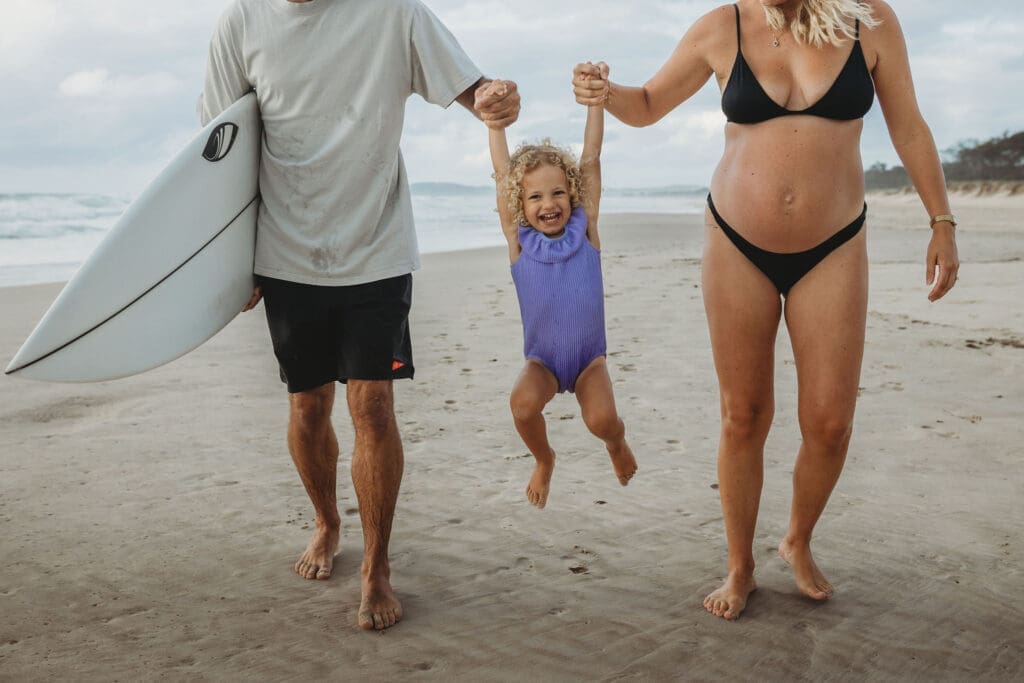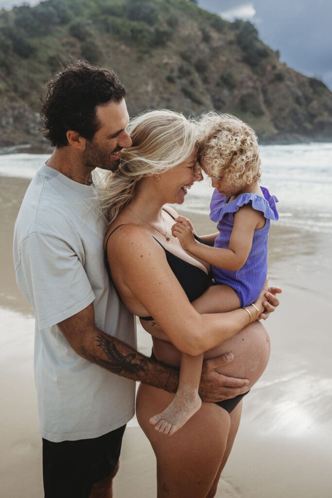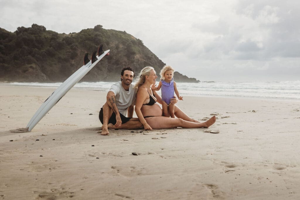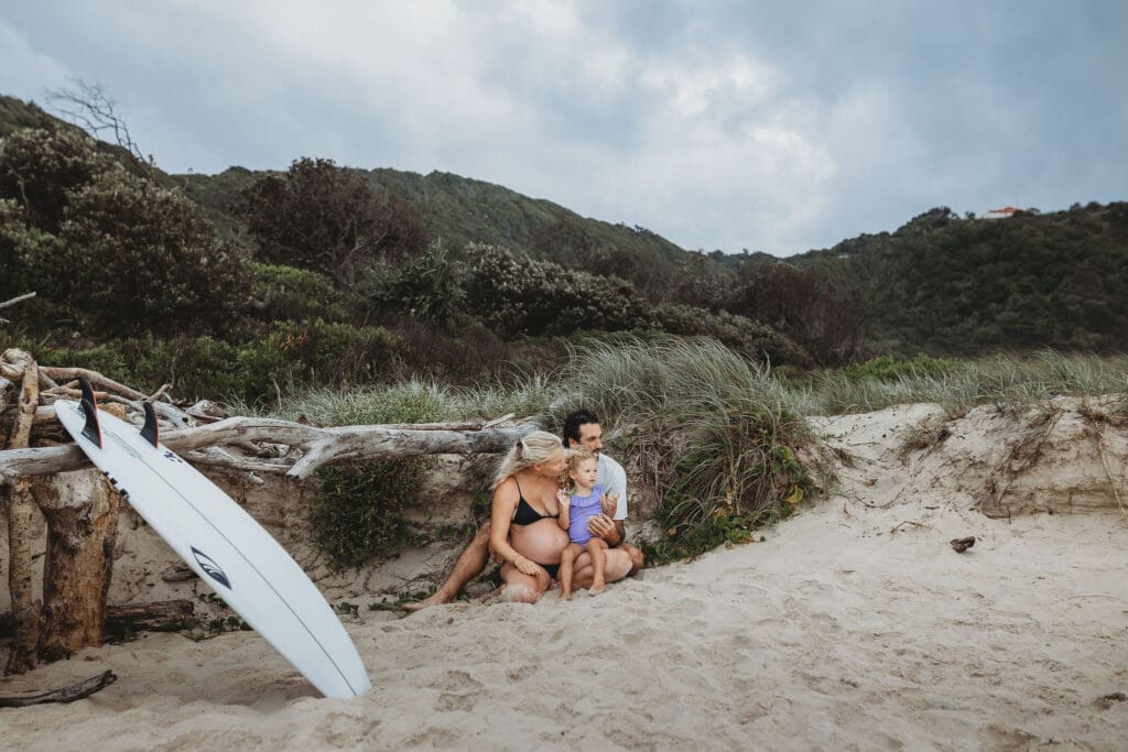 Cosy Corner Beach in Byron Bay is one of the most beautiful and relaxed locations for a maternity photoshoot. With its soft sand, gentle waves and laid back surfer energy, it offers the perfect backdrop for natural, unposed family photography.