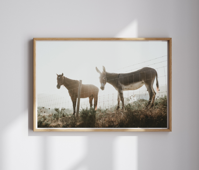 Two old souls and a sun flare too perfect to stage. Caught mid-glow in the fields of Portugal.Printed on textured archival paper, this one smells of hay, dust, and stories passed down. This is for a print only, ready for you to frame.